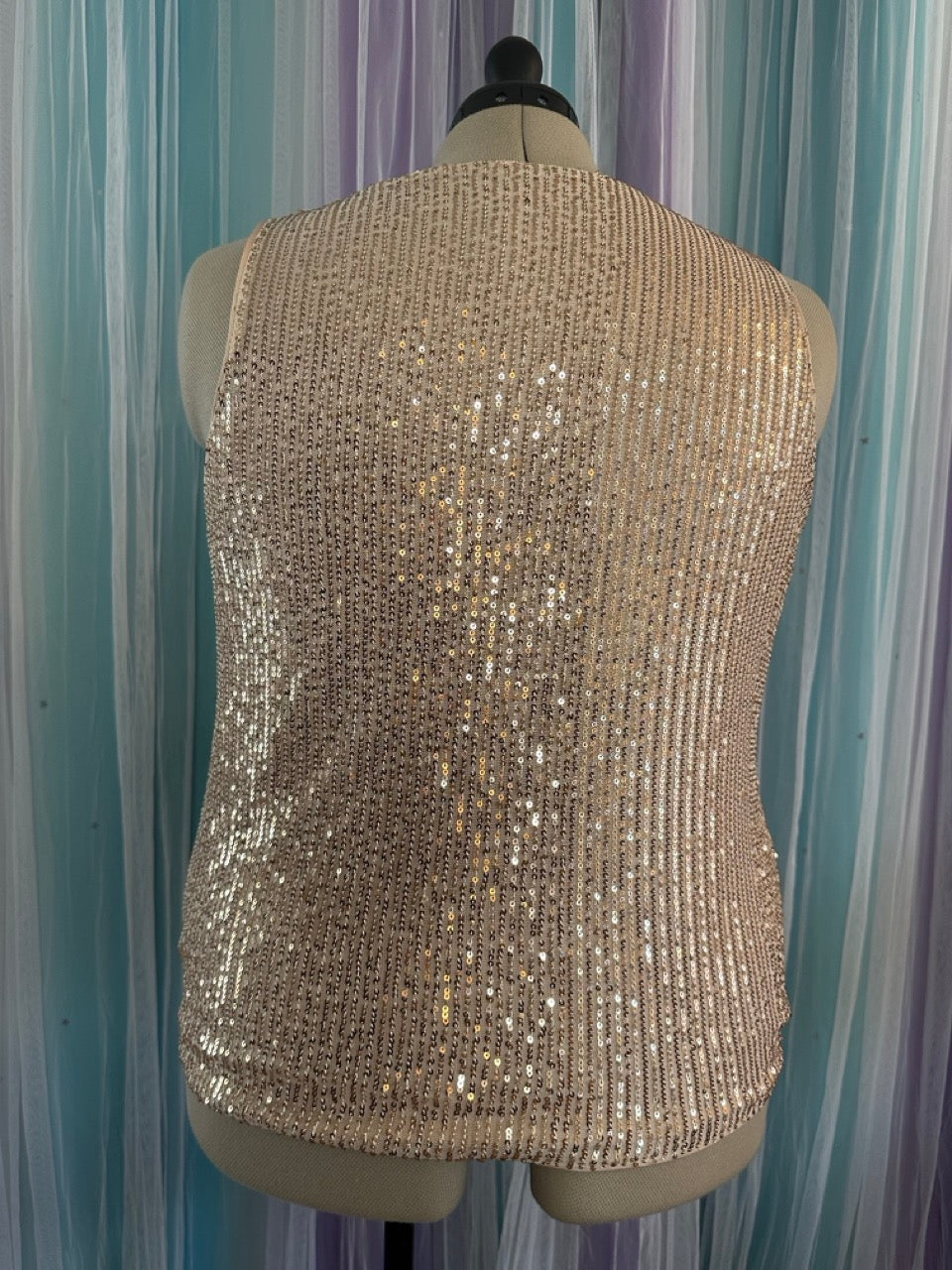 Light Gold / Cream sequin top, front waistband has elastic binding. Can be worn slow or mid neck.