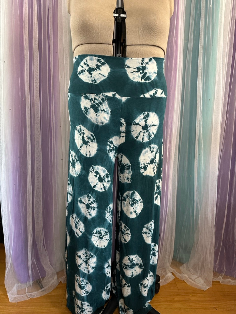 Thicc Original - Hand Made using thrifted material from Remainders Reuse. Pants feature a yoga waistband, and open out seams to create a flowing skirt look.